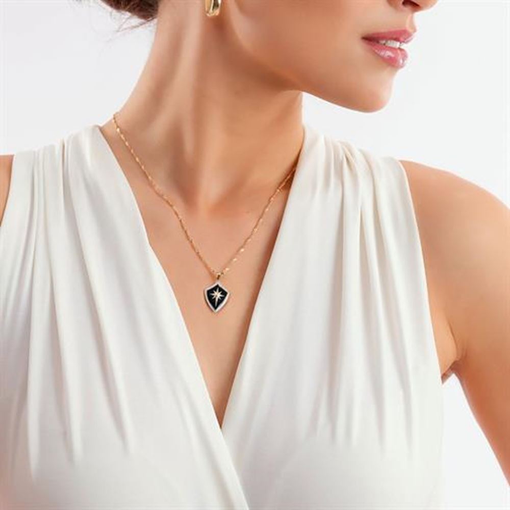 Kuzey Yıldızı Kalkan Altın Kolye, 14 ayar altının zarif ışıltısıyla koruyucu kalkan ve rehberlik simgesi kuzey yıldızını benzersiz bir tasarımda buluşturuyor. İnce işçilikle şekillenen bu özel parça, stilinize güç ve anlam katarken, kendiniz için ilham verici bir aksesuar veya sevdiklerinize unutulmaz ve değerli bir hediye seçeneği sunar.